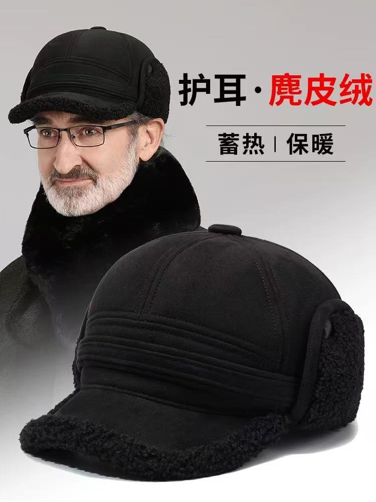 加绒新款户外休闲中老年人雷锋帽帽加厚秋冬爸爸保暖帽子护耳男士